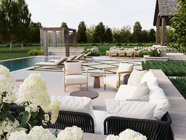 A spacious patio offers multiple gathering spaces for family and friends, seamlessly integrated into the natural flow of the yard. The result is a refined outdoor space where modern simplicity meets coastal charm stylish, welcoming, and designed to be lived in.